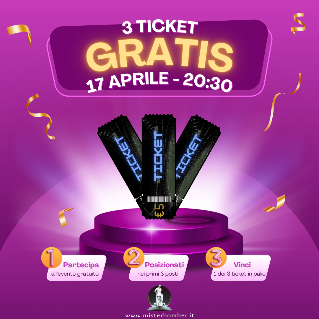 • L’evento gratuito è legato alla 32ª giornata di Serie A, in cui potrai vincere 1 ticket da €5, spendibile in qualsiasi altro evento a pagamento (Serie A o Eurocampionato).