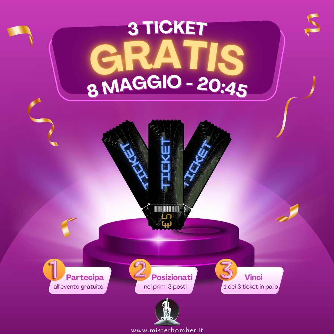 • L’evento gratuito è legato alla 36ª giornata di Serie A in cui potrai vincere 1 ticket da €5, spendibile in qualsiasi altro evento a pagamento (Serie A o Eurocampionato).